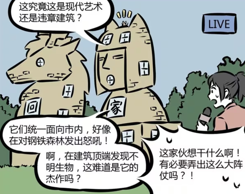 敖烈看到画面之后,才发现这不就是以他和九月为原型制造出来的?上面甚至还写了“回家”的字眼。看来狸力早就把敖烈的家当作自己的家。记者发现,这两座建筑物的方向都是朝着市内,不过她误以为是对钢铁森林发出怒吼。至于建筑物上面,还出现了不明生物,记者觉得可能就是它建造而来。敖烈发现这则新闻之后,接下来要将狸力接回来。他们之间的缘分,已经斩不断。