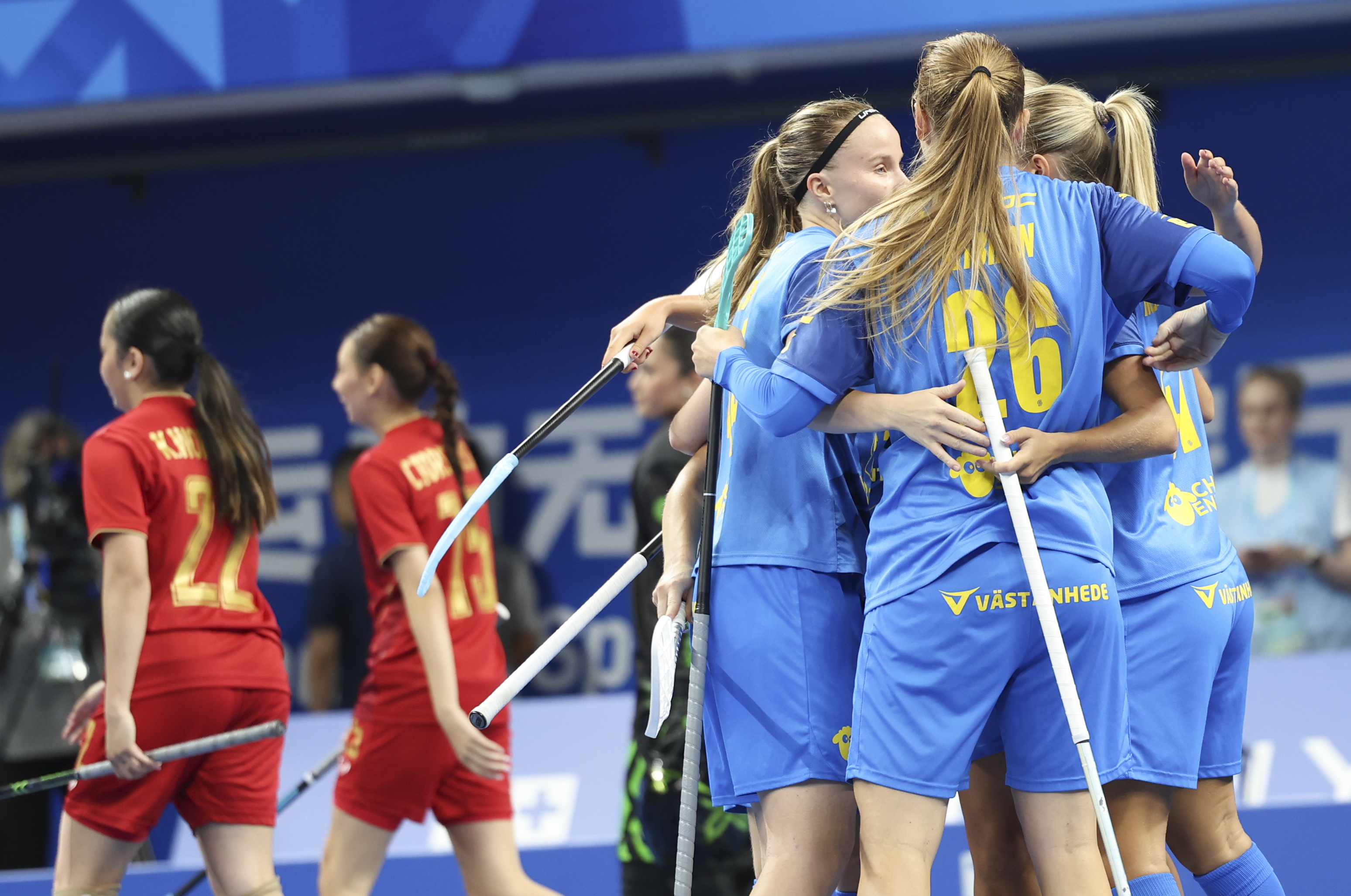 ↑ 瑞典队在进球后庆祝。新华社记者 张丽芸 摄